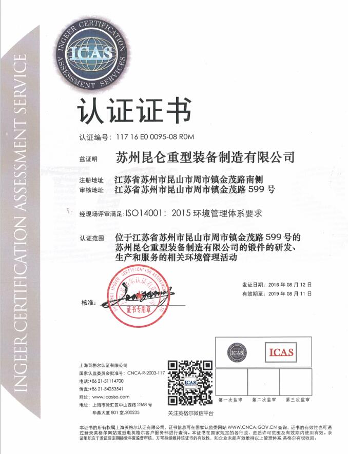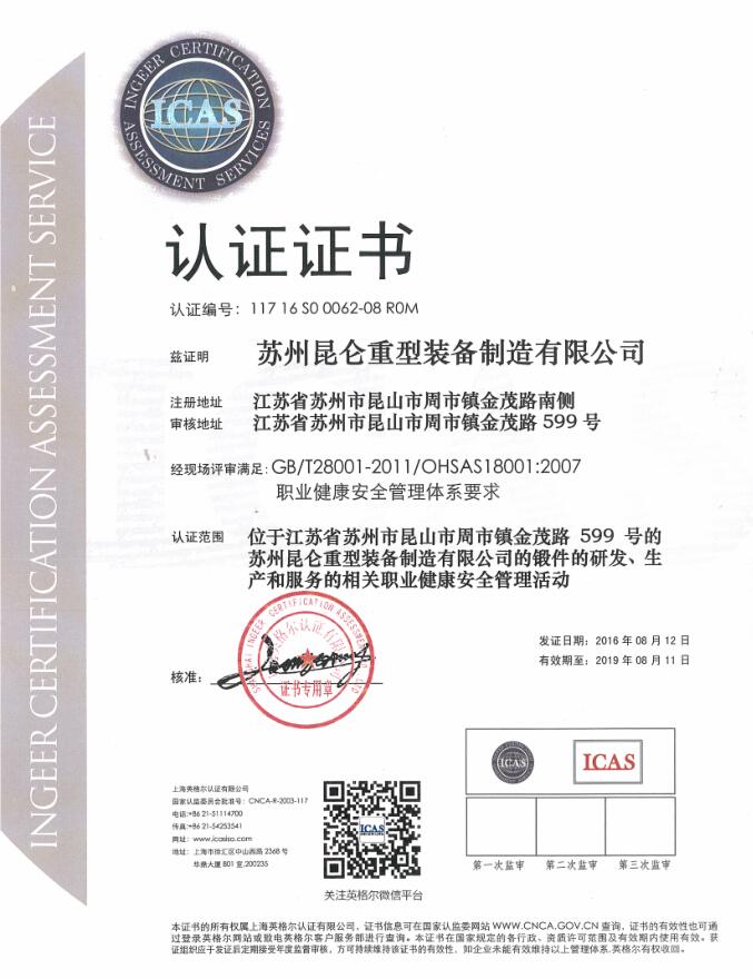 2016年7月,在公司各部門的共同努力下,通過(guò)了ISO14001環(huán)境管理體系和OHSAS18001職業(yè)健康安全管理體系的評(píng)審,并取得了頒發(fā)的兩體系認(rèn)證證書。